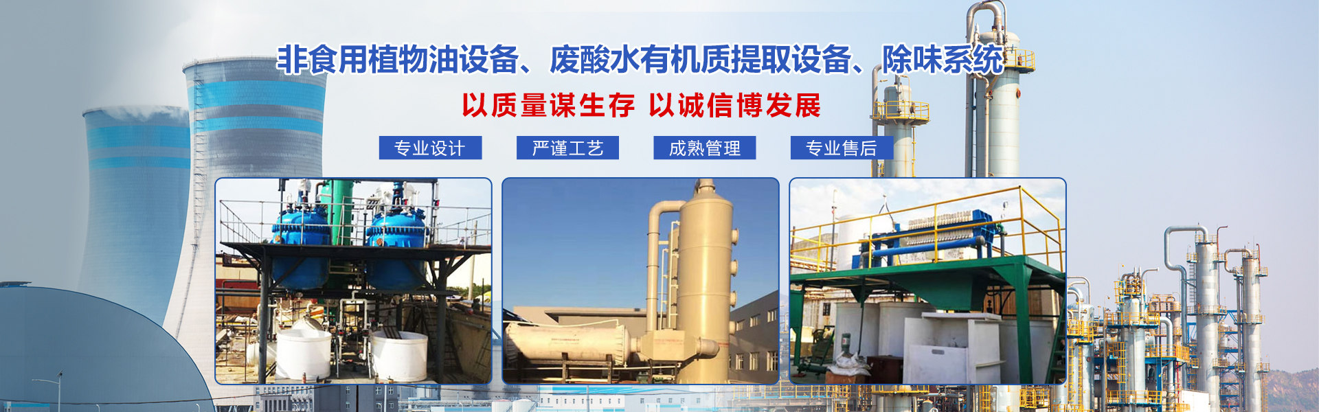 海南盛陽世紀機械設備有限公司是一家專門從事非食用植物油生產設備、廢酸水有機質提取設備、除味系統、水處理工藝設備的設計、研發(fā)、制造、銷售、租賃以及技術培訓、自動化設計等一站式服務的專業公司